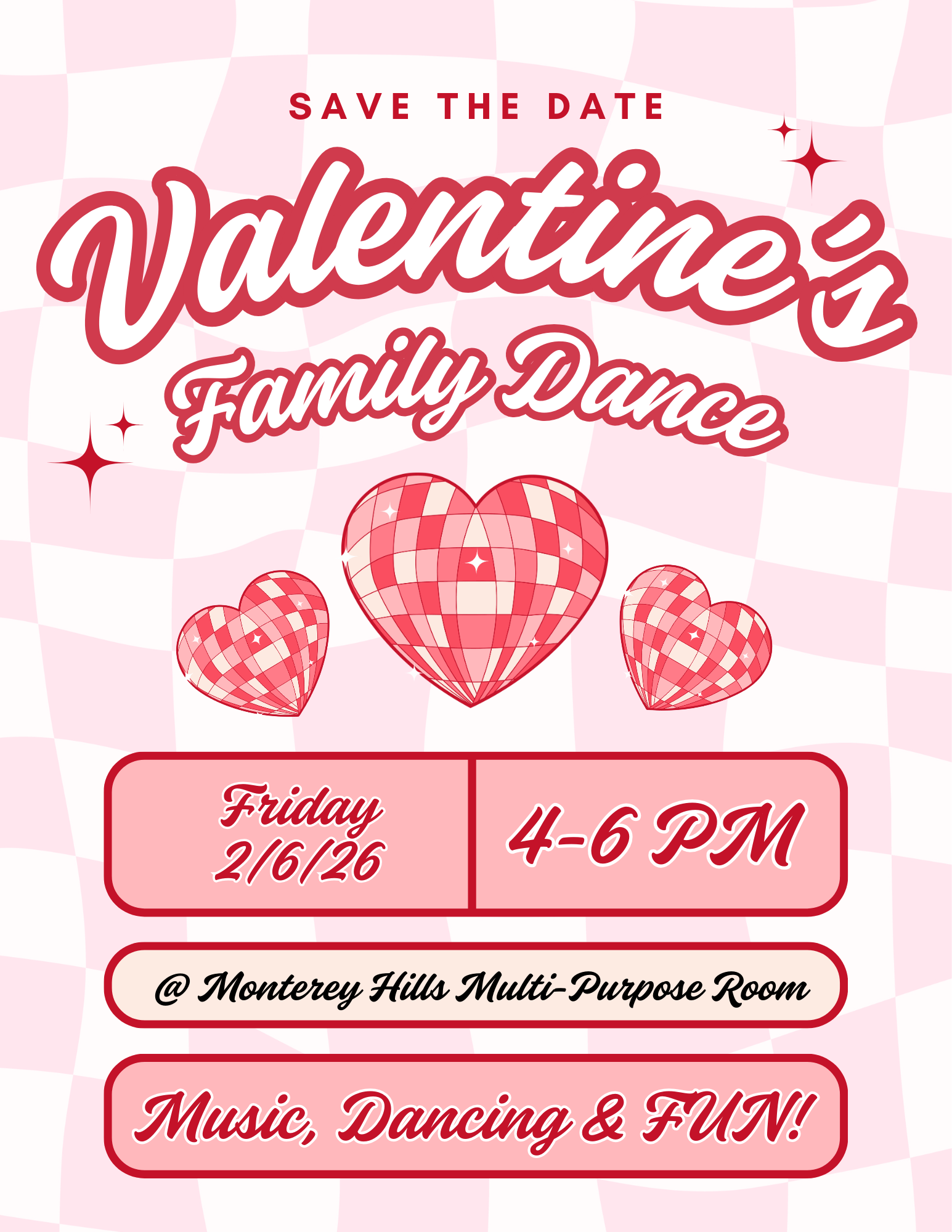 Valentine’s Family Dance - Friday, February 6 @ 4-6 PM