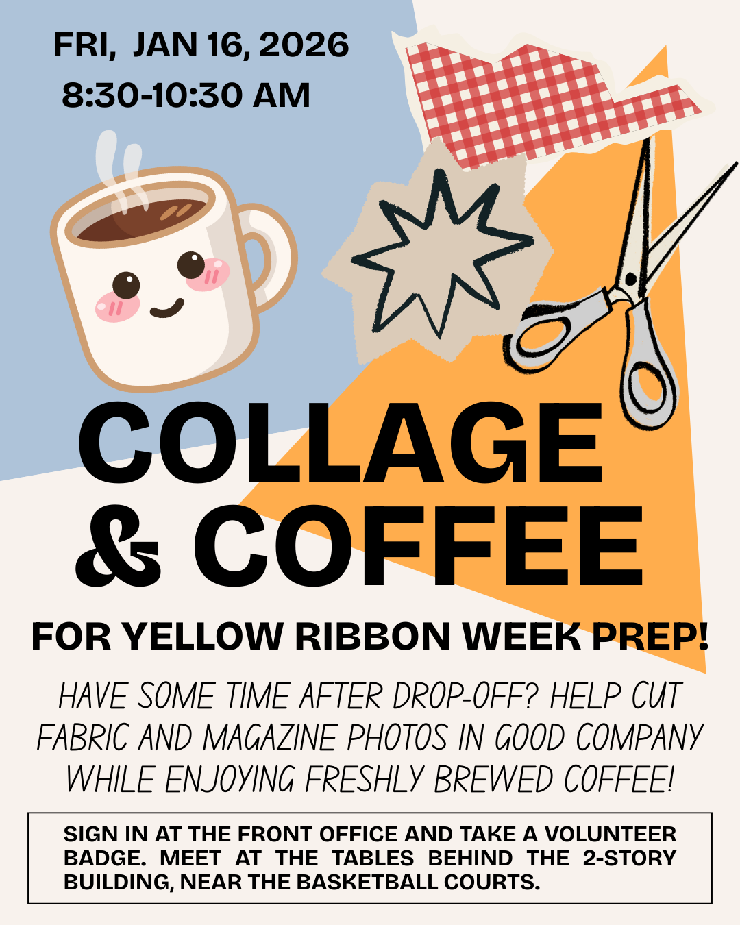 In preparation of this wonderful week, we invite our Roadrunner adults to join us in a morning of coffee and cutting collage materials to prepare for our YRW activities.